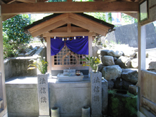 十一屋小学校横にある八幡神社の裏手から湧き出しています。祭られている不動尊は、明治44年に百間堀を埋め立てる際に掘り出されたものだそうです。石の間から流れ落ちる清らかな水は、眼病に効くという言い伝えもあるようです。