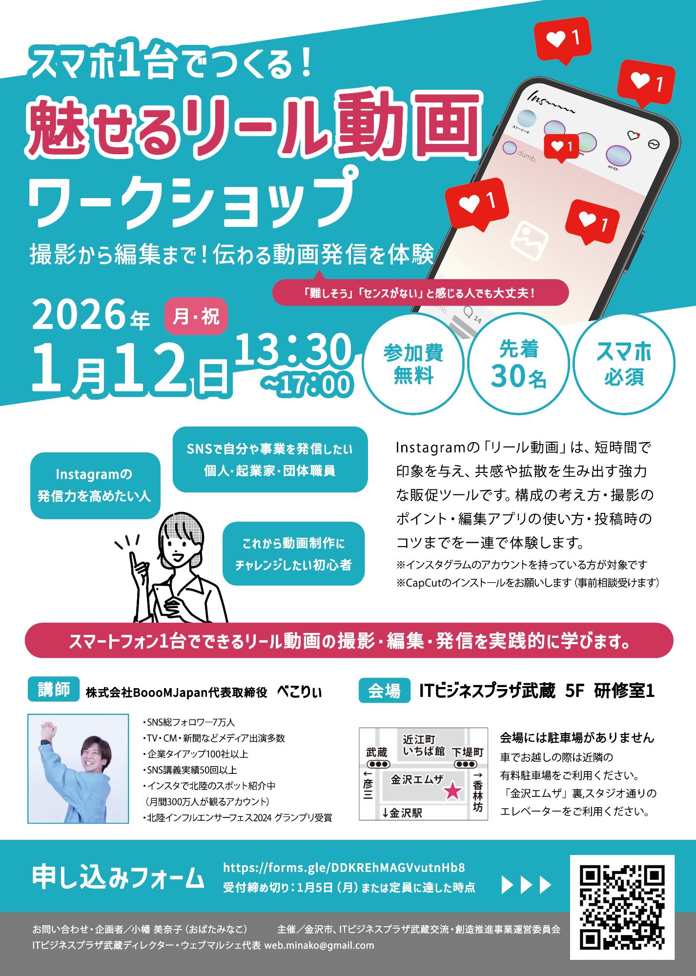 - スマホ1台でつくる!魅せるリール動画ワークショップ