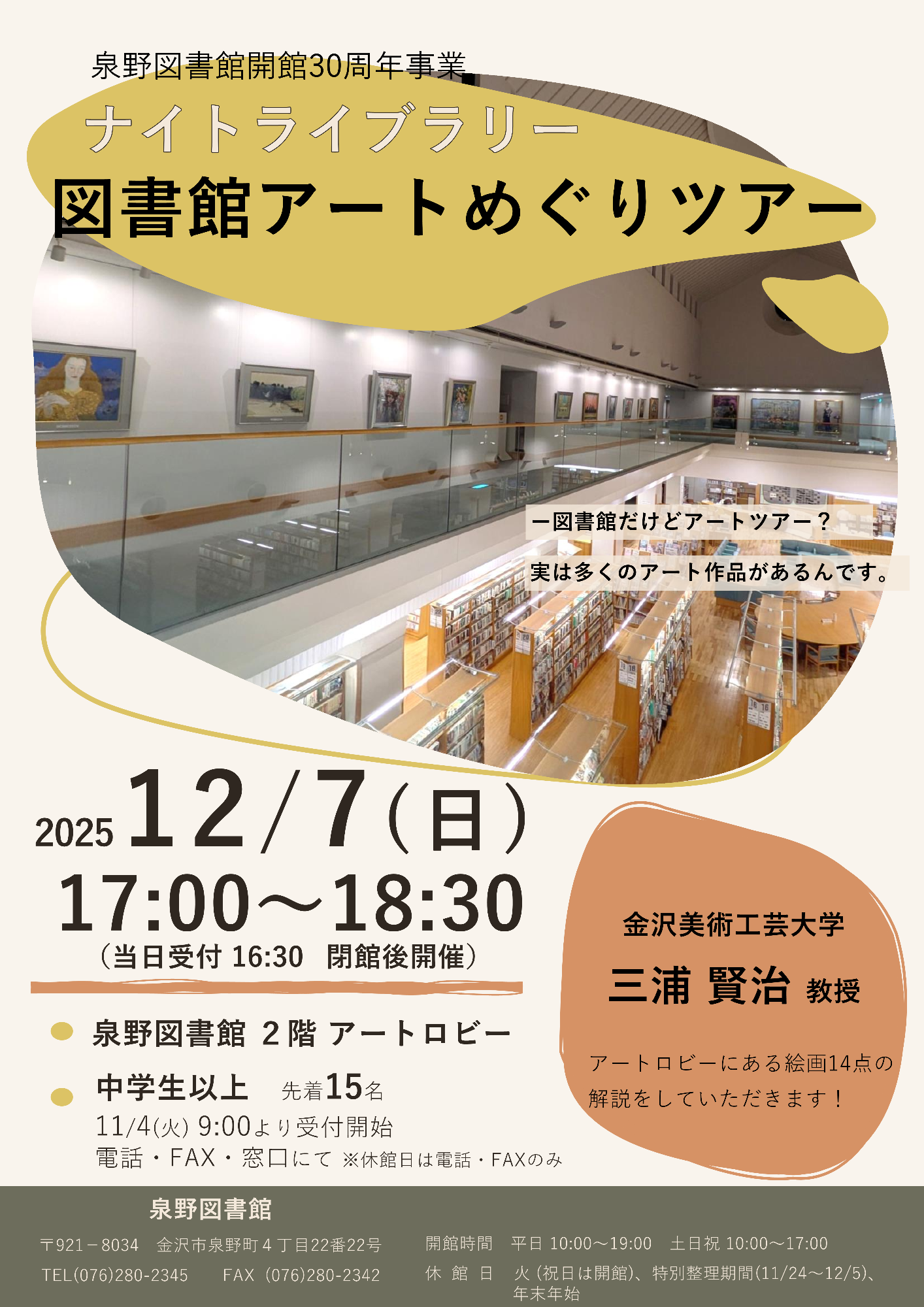 - ナイトライブラリー『図書館アートめぐりツアー』