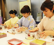 茶の湯文化の町・金沢の老舗和菓子店の職人が、四季折々の上生菓子のつくり方を親切・丁寧 に教えます。自分でつくった3個と、職人が作った1個の計4個をお持ち帰り頂けます。