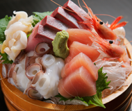 平日でも予約をしないと入れない評判店。魚介は地元金沢や能登、富山県新湊漁港などから仕入れ、イチオシは厚く切った刺身を豪快に盛り付けた日本海お刺身桶盛。白海老かき揚げや甘海老のパリのっけなど、さまざまな魚介料理に満足。