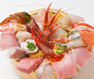 石川の海鮮丼専門店の先がけ的な存在。今もその勢いが続いており、海鮮系は約30種。丼からあふれ出すネタ約20種に金箔を散らした上ちらし近江町(特盛)や写真ののど黒炙りちらしが好評だ。魚介の天丼もある。