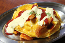 地元の人がこよなく愛する金沢のご当地洋食。ケチャップライスに玉子焼とフライをトッピングし、タルタルソースやソースをかけたボリュームある一品。