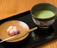 にし茶屋街にある、嘉永2年(1849)創業の諸江屋直営ショップ。店の奥がカフェになっており、季節の上生菓子とお抹茶が味わえる。冬は、ミニ火鉢で自分の餅を焼く能登大納言ぜんざいが、夏は宇治金時かき氷も楽しめる。