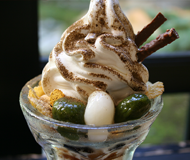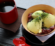 安政6年(1859)創業の老舗茶舗。茶店風の店内では専門店ならではの抹茶ソフトをはじめ、各種お茶スイーツが堪能できる。ほうじ茶ソフト、刻みチョコをふりかけたソフトに温かい濃厚抹茶をかける抹茶アフォガードなどがおすすめ。