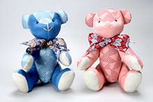 加賀藩前田家に伝わる名物裂コレクションから鱗文を復刻し、キュートなテディベアに。古くから鱗文は女性の厄除けに使われていたそう。