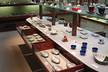 約350年前から青、黄、赤、紫、紺青の五彩を使って描かれる、絢爛豪華な色絵が特徴の焼物。最近は遊び心あふれる日常使いの器も多い。