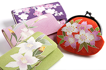 草花や鳥などをモチーフとした優美な加賀友禅を、カードケースにアレンジ。いろいろな柄や色があり、プレゼントにも喜ばれそう。