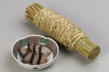 脂ののったぶりを塩漬けし、藁と縄で巻いた能登の伝統的な保存食。凝縮されたぶりの旨みとハムのような柔らかさで酒の肴に最適。