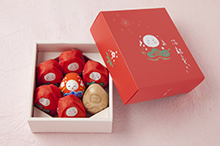 金沢に伝わる郷土玩具、加賀八幡起上りを模したかわいらしい最中。中には上品な甘さの餡がたっぷり詰まっており、お祝いにも喜ばれそう。