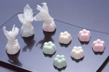 和三盆糖を使った伝統の落雁を、花の形のひと口サイズに。口の中でとろけ上品な甘さが広がる。和紙に包んだ姿がうさぎに似ていることから銘々された。