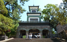 加賀藩の藩祖、前田利家と正室お松を祭る神社。国の重要文化財にも指定され、和漢洋の3つの建築様式が用いられた「神門」は有名な観光スポット。