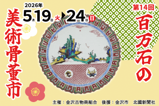 - 九谷焼や輪島塗をはじめとする石川県の伝統工芸品や、古美術・骨董品を取り揃えた展示即売会です。陶磁器や着物、掛け軸など豊富な品揃えでお待ちしています。掘り出しものがきっとみつかるはずです。